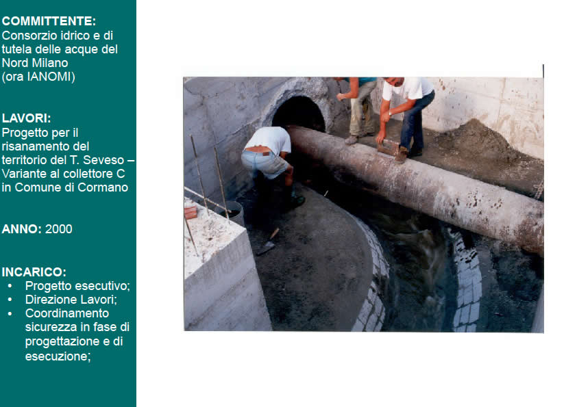 Committente: CONSORZIO IDRICO E DI TUTELA DELLE ACQUE DEL NORD MILANO (ora IANOMI)Progetto per il risanamento del territorio del T.Seveso - Variante del collettore C in comune di Cormano